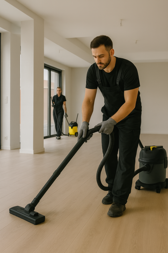Unsere Bauendreinigung umfasst Grob-, Zwischen- und Endreinigung nach Bau- oder Renovierungsarbeiten. Wir entfernen Staub, Zementschleier, Schutzfolien und sorgen für eine saubere Übergabe. Perfekt für Bauträger, Architekten und private Bauherren.