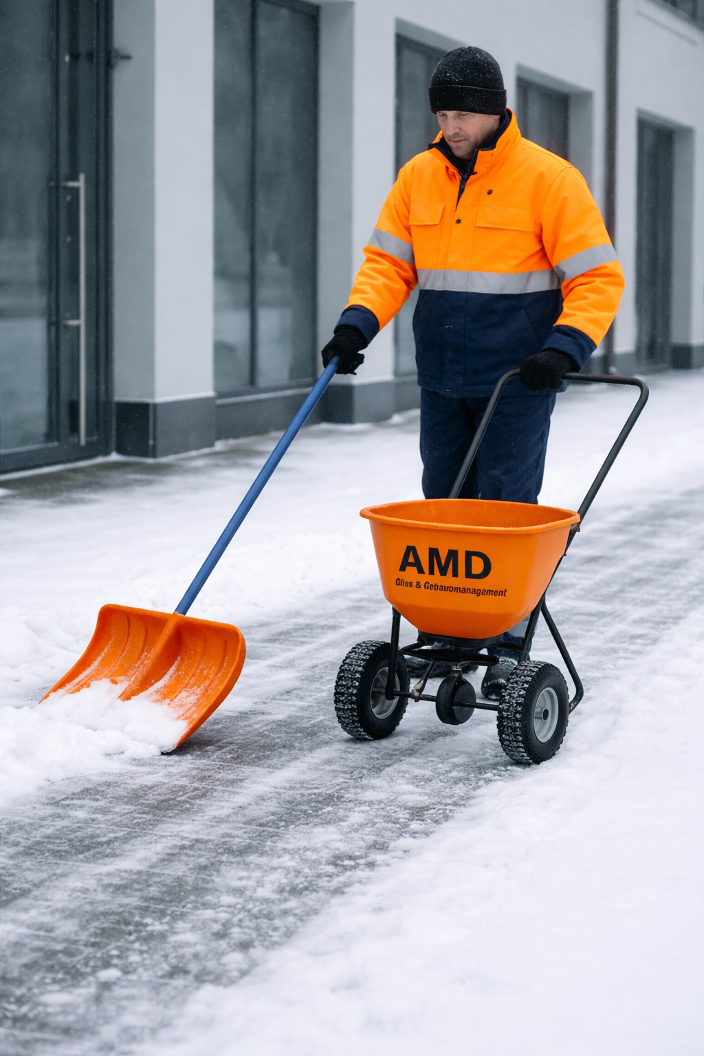 Sicherer Winterdienst mit Räumen, Streuen und Schneeräumung für Gehwege, Einfahrten, Parkplätze und Außenflächen. 24/7 Bereitschaft garantiert Sicherheit und Planbarkeit im Winter.
